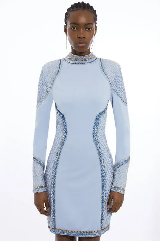 Master the art of special occasion dressing in our mini dress. With beaded embellishments that create an opulent feel, crafted from a quality ponte jersey that drapes over the body, this piece contours the figure and is guaranteed to turn heads. Style with heels for an evening look to keep coming back to.Beaded And Embellished Ponte Jersey Mini DressStructured Ponte Jersey FabricBody Contouring DesignFitted SilhouetteSparkling Beaded EmbellishmentsZip Fastening in Back<Details & CareShell: 100% Polyester. Lining: 100% Polyester. Beads: Glass. Hand wash separately in cool water using non-biological liquid detergent. Do not dry clean. Model Height 5''10 – Model wears a UK 8/US Size 6.