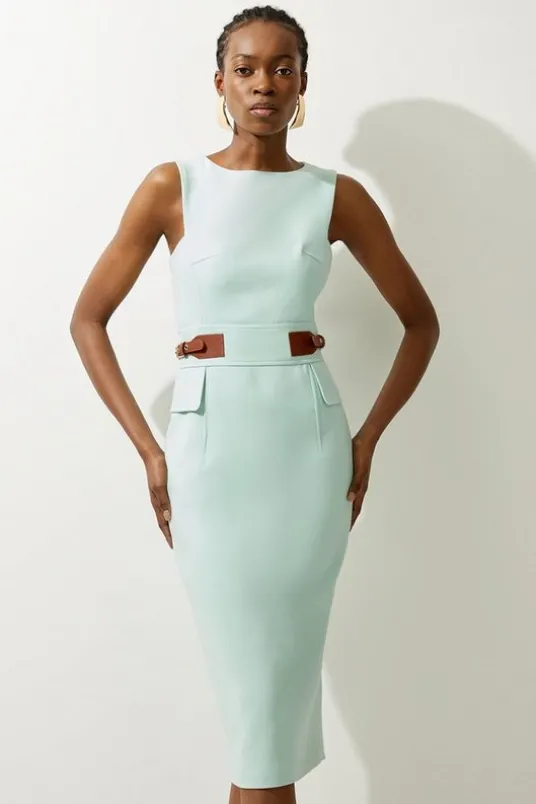 Compact Stretch Tab Waist Detail Tailored Midi Dress