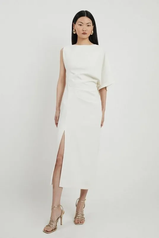 Fluid Tailored Asymmetric Sleeve Midi Dress