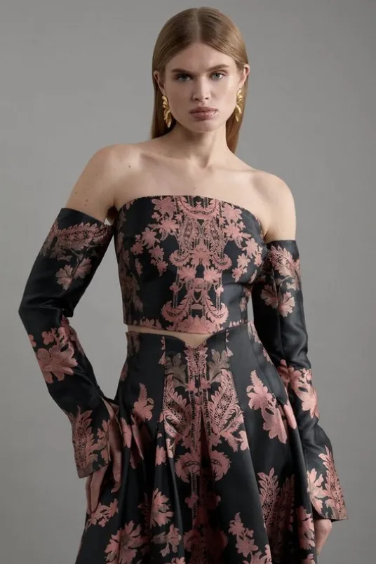 Jacquard Woven Floral Off The Shoulder Top