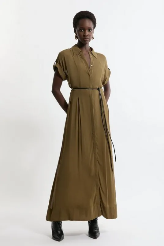 Petite Pleated Woven Viscose Midaxi Shirt Dress