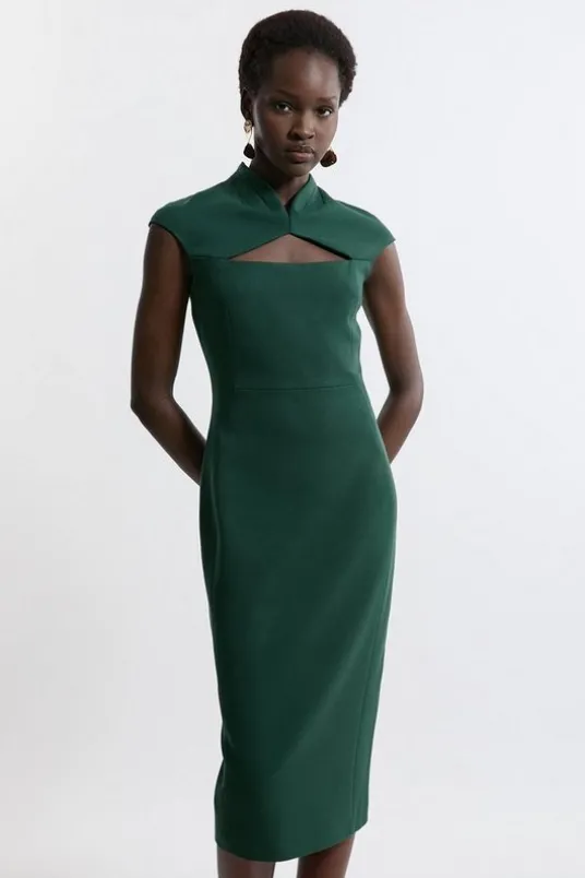 Petite Structured Crepe Tailored Cape Pencil Midi Dress