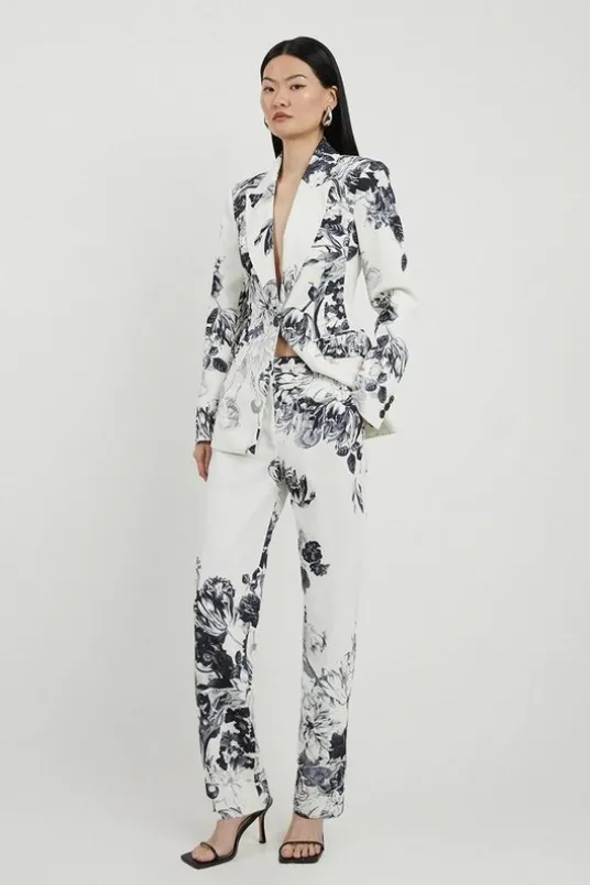 Petite Sale35% off*FORMAL WEARPetite ClothingCLOTHINGSALESale Formal WearSale PantsPantsCYBER DEALSFeel confident in a tailored co-ord set, with trousers that feature a monochromatic colorway, as well as a floral design and a slim fit. Style this piece with the matching blazer and heels for a look that goes seamlessly from party nights to date nights.Petite Tailored Crepe Mono Floral Slim Leg Tailored TrousersHigh Quality Crepe FabricUnique Floral PatterningStatement Monochrome ColourwayFlattering Slim FitPocket FeaturesMatching Blazer Sold SeparatelyExpertly designed for those 5’3″ and under, our Petite pieces are perfectly proportioned for a smaller frame using shorter lengths.Details & CareMain: 72% Polyester 28% Recycled Polyester. Lining: 100% Polyester. Dry clean only. Model wears UK Size 8/ US Size 4. Item length 66cm