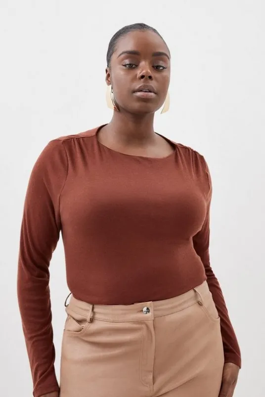 A staple item for cooler seasons, this long sleeve top is crafted from premium soft wool with a boat neck and a sculpted fit. Wear as a foundation layer or paired with leather pants and a blazer for workwear.Long sleevesWoolBoat necklineSculpted fitExpertly designed for those UK size 18/US size 14 and above, our plus size clothing collection is perfectly proportioned to ensure you look fashionable at every shape.Details & Care80% Lyocell 20% Wool. Cool hand wash separately. Model wears a XL.