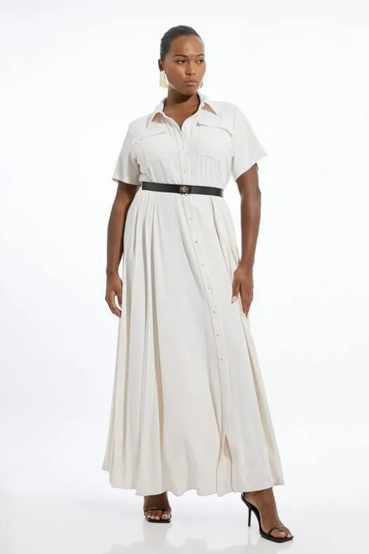 Plus Size Soft Tailored Pleat Panel Midi Shirt Dress