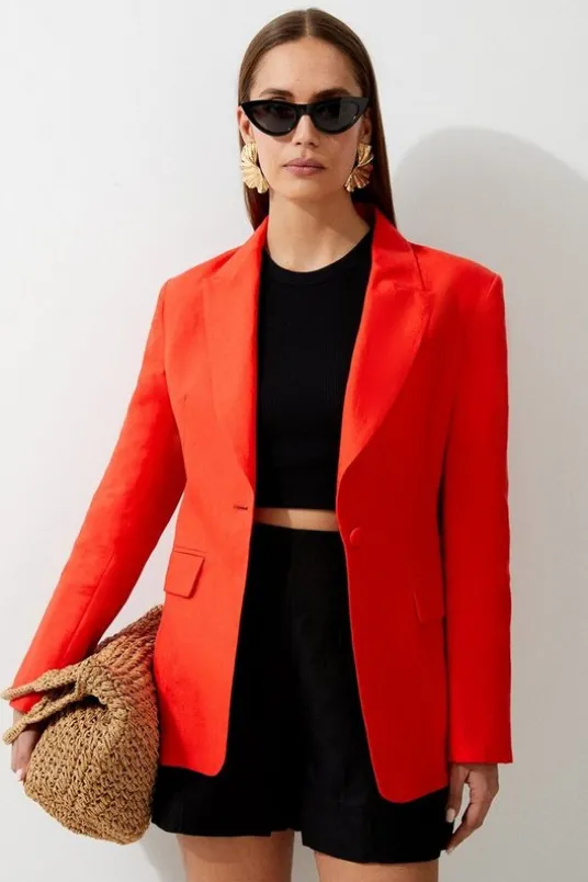 CLOTHINGextra 20% off | use code: WINTER20SALE35% off*CYBER DEALSThe ultimate workwear staple, this blazer has been designed with linen for a lightweight, breathable feel that effortlessly calls to summer months. Notched lapels elevate this piece, while a one button design adds a timeless touch. Style this blazer with co-ordinating linen trousers for a sleek warm-weather ensemble.LinenCollaredOne button designDetails & CareMain: 100% Linen. Lining: 100% Polyester. Dry clean only. Model wears UK Size 8/ US Size 4. Model height approx: 5″9. Length approx: 75cm