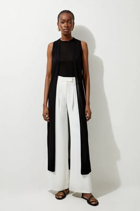The perfect choice for transitioning seasons, this soft knit cardigan features a lightweight knit fabric cut to a longline length for full coverage. With an open design and a flowing length, this piece can be styled with anything from a T-shirt and tailored trousers, to shorts and a crop top, to a jumper and jeans.Sleeveless Lightweight Summer Knit Edge To Edge CardiganSoft Knit BlendUnique Maxi LengthRelaxed, Open DesignLeg Split FeaturesDetails & Care89% Viscose 11% Polyamide. 30 degree cotton cycle. Model wears UK S.