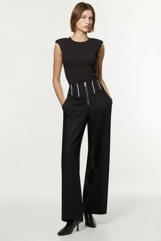 Tailored Contrast Tipped Stitch Detail Straight Leg Pants