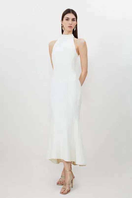 Tall Compact Stretch Waterfall Hem High Neck Midi Dress