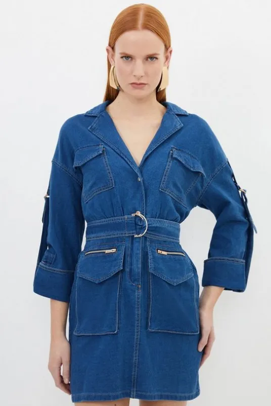 Crafted with premium denim, this mini dress features a shirt style for a playfully smart mood. Presented with a notched collar, flap pockets with golden zip detailing and an embellished belt for a cinched silhouette. Finished with long sleeves.DenimMini dressBeltedExpertly designed for those 5’10” and above, our Tall pieces are perfectly proportioned for a taller frame using longer lengths.Details & Care100% Cotton. Gentle machine wash at 30 with similar colours. Wash inside out. Model wears a UK 8/US 6. Centre back length of a UK 8/US 6: 95cm