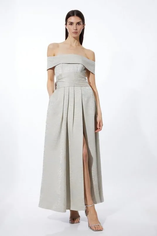 Tall Jacquard Woven Off The Shoulder Maxi Dress