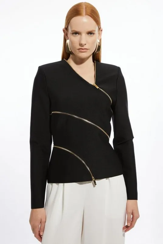 Asymmetric Zip Detail Figure Form Bandage Knit Top
