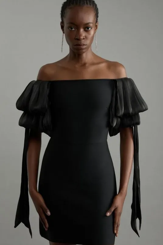 Bandage Figure Form Knit Tassel Sleeve Detail Mini Dress