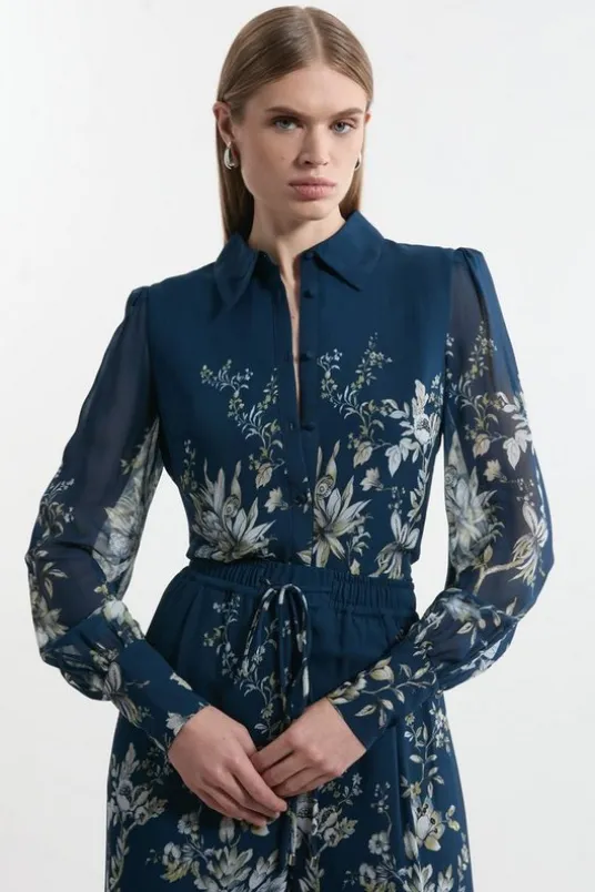 Experience elevated top options in our balloon sleeve shirt, featuring a floral print, with balloon sleeves for a playful edge. Pair it with tailored trousers or jeans and boots or strappy heels for all eventualities.Border Print Viscose Piped Woven Shirt Balloon Sleeve ShirtStatement, Balloon Style SleevesDelicate Floral PrintComfortable, Relaxed FitMatching Pieces Sold SeparatelyDetails & CareMain: 100% Viscose/Rayon. Lining: 100% Polyester. Wash inside out. Model wears UK Size 10.