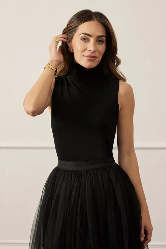 Introducing By Lydia: An Elegant Invitation – a new season collection with Lydia Millen, infused with sophistication and flair for the party season.Step out in confidence in our knit top, made with high quality, ultra soft cashmere, featuring a fitted silhouette and a high neckline. Wear it with tailored trousers or jeans, shorts or a maxi skirt, for every day looks with impact.Lydia Millen Cashmere Wool Blend Sleeveless Roll Neck Knit TopHigh Quality Cashmere Wool BlendHigh, Rolled NecklineComfortable, Bodycon SilhouetteSleeveless DesignDetails & Care47% Wool 38% Viscose/Rayon 11% polyamide 6% cashmere. Wash with similar colours. Cool iron. Model wears UK SMALL. Length Approx: 65cm