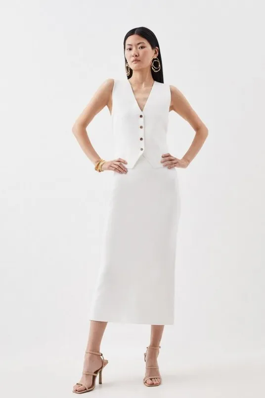 Elevate your top selection with our waistcoat, with a figure hugging fit, and tortoise shell buttons down the front. This piece pairs well with anything, from matching separates, to tailored trousers, to jeans for an elevated look that will take you seamlessly from day to night.Compact Knit Wool Look V-Neck WaistcoatHigh Quality, Soft Knit FabricClassic Waistcoat StyleV NecklineFitted SilhouetteSleek, Minimal Design Tortoise Shell Button DetailingButton Front FasteningDetails & Care51% Viscose 28% Polyester 21% Polyamide. Wash separately inside out. Model wears UK Small.