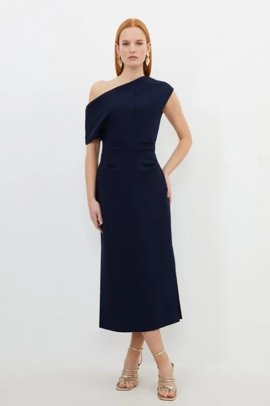 Compact Stretch Drop Shoulder Tailored Midi Dress