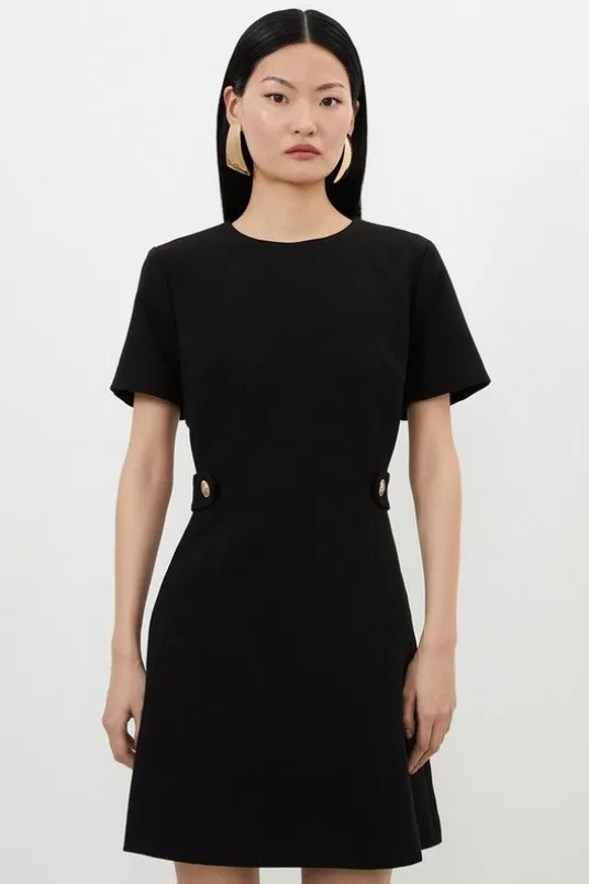Compact Stretch Essential Waist Tab Detail Tailored Mini Dress