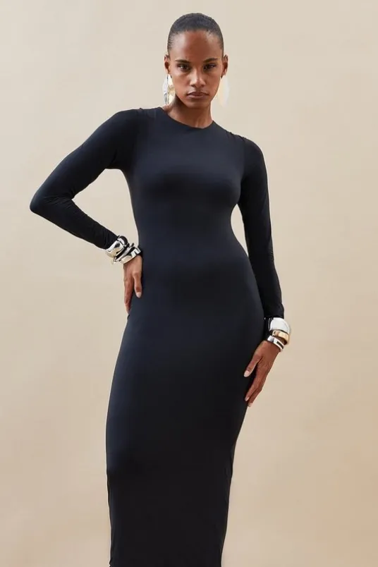 Contour Jersey Long Sleeve Crew Neck Midi Dress