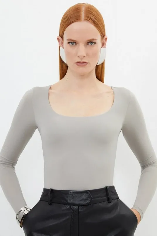 The Contour collection features a range of separates and dresses designed to enhance any body shape. Crafted from soft, double-lined jersey fabric, these pieces offer a non-restrictive fit for the utmost comfort. This form-hugging material outlines the body’s natural curves and smooths the silhouette to create a flattering effect.Square neckLong sleevesSculpting fitDetails & Care75% Polyamide 25% Elastane/Spandex. Gentle machine wash at 30 with similar colours. Model Height 5”10 – Model wears a S.