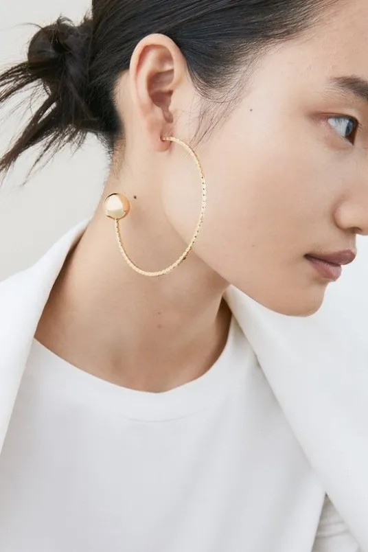 Ensure all eyes are on you with these maxi hoop earrings. This bold pair is the perfect accessory for a sleek hairstyle and minimalist ensemble.Style: EarringsDesign: PlainFabric: MetalDetails & CareDesigned in London our Karen Millen Jewellery collection always offers on trend and chic products in a premium plated finish. The collection is a great way to finish off and personalize any outfit and can be the perfect gift for a friend or loved one. Care: Wipe with soft dry cloth. Products must be removed before showering, bathing, grooming and must not come in contact with any chemicals or abrasives. Jewellery comes in a Karen Millen dust bag. Earring drop: 7.25cm. Material: 100% Brass
