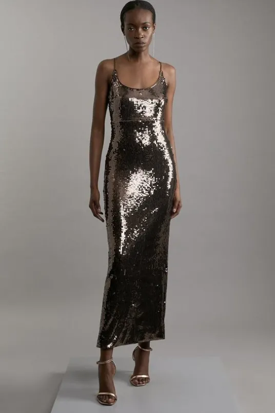 Disc Sequin Strappy Woven Midi Dress
