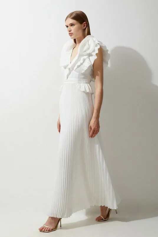 Drama Pleat Ruffle Rosette Woven Maxi Dress
