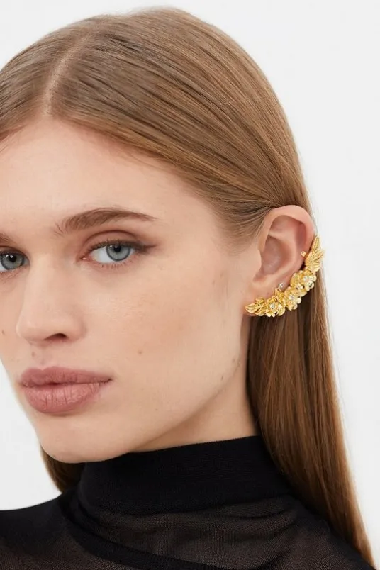 Take a shine to these cuff earrings. Designed with glistening diamantes set in a premium gold plate metal, they’re a special touch to after-hours looks.Style: EarringsDesign: PlainFabric: MetalDetails & CareDesigned in London our Karen Millen Jewellery collection always offers on trend and chic products in a premium plated finish. The collection is a great way to finish off and personalize any outfit and can be the perfect gift for a friend or loved one. Care: Wipe with soft dry cloth. Dimensions: 2.1cm / 5.6 x 1.5cm. Products must be removed before showering, bathing, grooming and must not come in contact with any chemicals or abrasives. Jewellery comes in a Karen Millen dust bag. 67%ZINC 20%STEEL 10%GLASS 3%TITANIUM.
