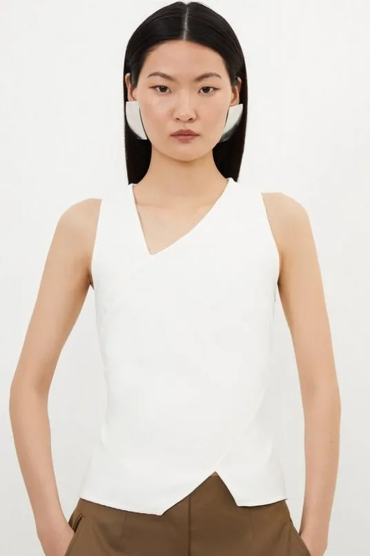 Elevate your evening looks in our top, with a fitted silhouette, asymmetric detailing at the neck and hemline, and a waistcoat inspired design. Style it with tailored trousers or jeans and strappy heels for an elevated evening look.Figure Form Bandage Asymmetric Knit TopHigh Quality Knit FabricFlattering Fitted SilhouetteUnique Asymmetric DesignWaistcoat Style CutDetails & Care97% polyester 3%elastane. Wash with similar colours. Model wear UK Small. Model height approx 5″9.