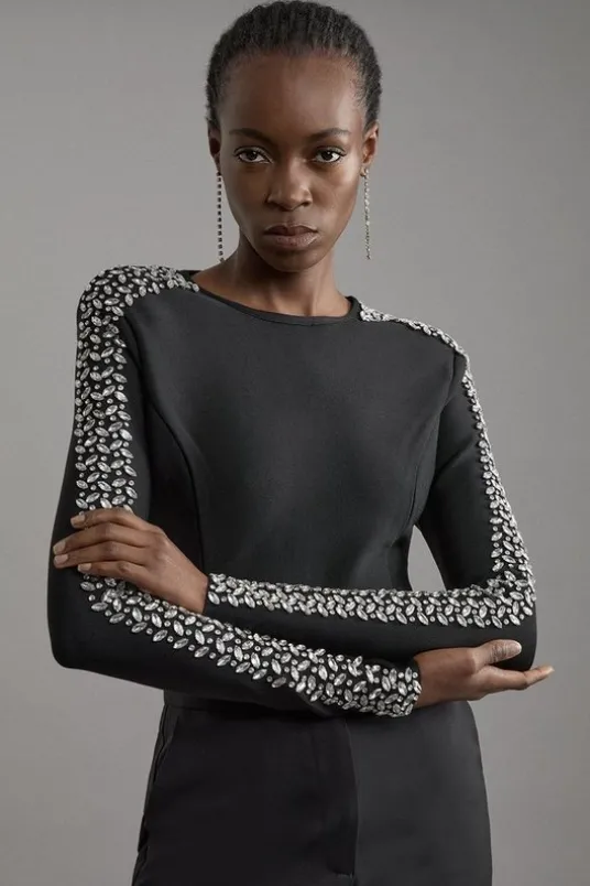 Figure Form Bandage Knit Embellished Top