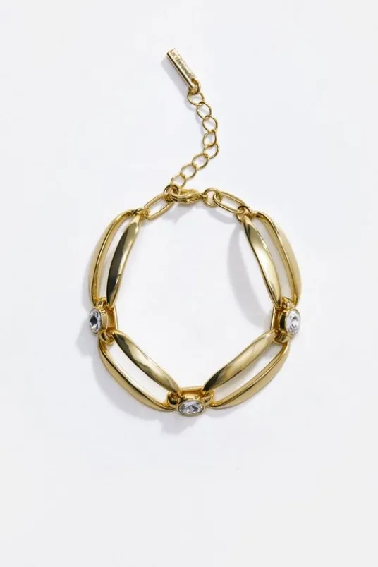 Add sleek sophistication to your look with Karen Millen’s Crystal Ellipse Bracelet. A chic, modern twist on the classic chain, this bracelet features hand-set crystal detailing and an adjustable extender chain for the perfect fit. Finished in gold-tone plating and fine European crystals, it comes packaged in a Karen Millen branded gift box.BRASS & CRYSTAL WITH GOLD TONE PLATINGHand-set fine European crystalsAdjustable extender chainModern link designGift box packagingAlways put your Karen Millen jewelry on as a finishing touch after any perfumes or sprays. Keep away from water, sun cream, lotions, hand sanitiser, and other chemicals such as chlorine. To clean, we recommend using a soft cloth only – any chemicals or polishing liquids will wear away the plating. Jewelry should be carefully stored in the packaging provided. Always remember: It should be the last thing you put on in the morning, and the first thing you take off in the evening.Details & CareAlways put your Karen Millen jewellery on as a finishing touch after any perfumes or sprays. Keep away from water, sun cream, lotions, hand sanitiser, and other chemicals such as chlorine. To clean, we recommend using a soft cloth only – any chemicals or polishing liquids will wear away the plating. Jewellery should be carefully stored in the packaging provided. Always remember: It should be the last thing you put on in the morning, and the first thing you take off in the evening.