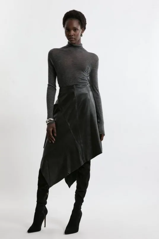 Leather Asymmetric Hem Drape Skirt