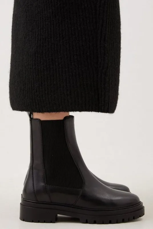 Get ready for cold days in our chunky Chelsea boots, made in sleek, supple real leather, featuring a classic Chelsea style with an elasticated panel and an easy, pull-on design, as well as chunky soles for full protection from the elements. The sleek design makes them easy to style with anything, from jeans and a knit jumper for a cosy Winter walk, to tailored wide leg trousers for an androgynous edge.Leather Chunky Chelsea BootHigh Quality Real LeatherComfortable, Chunky DesignClassic Elastic PanelPull Tabs for Easy AccessDetails & CareLining: Premium Leather, Upper lining: Premium Leather, Sole: Resin, Insole: Premium Leather, Upper: Premium Leather.