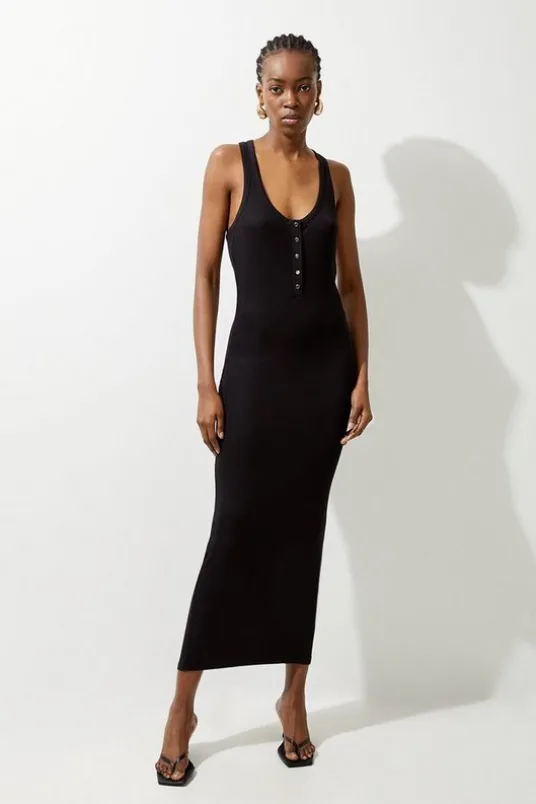 Lux Viscose Rib Jersey Racer Back Midi Dress