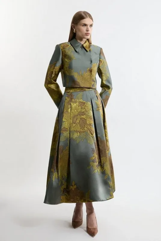 Lydia Millen Petite Floral Jacquard Woven Midaxi Prom Skirt