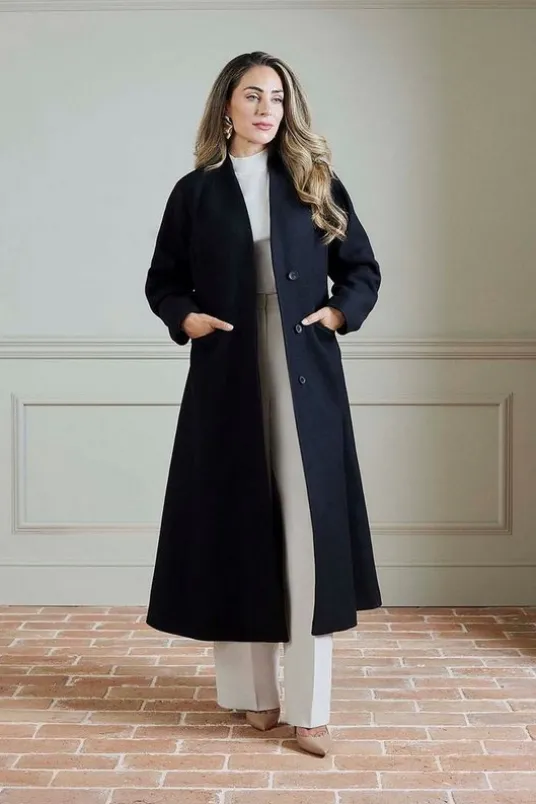 Lydia Millen Premium Italian Manteco Wool Rounded Sleeve Skirted Tailored Midaxi Coat
