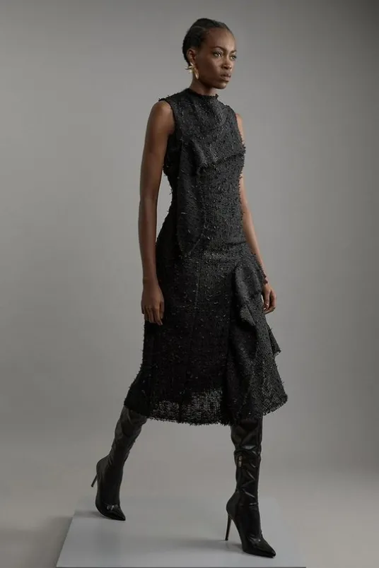 Metallic Boucle Tailored Sleeveless Asymmetric Midaxi Dress