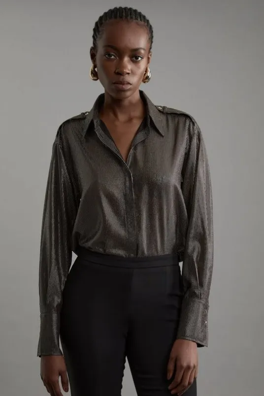Be the first to review “Metallic Woven Collared Pinstripe Shirt” Cancel reply