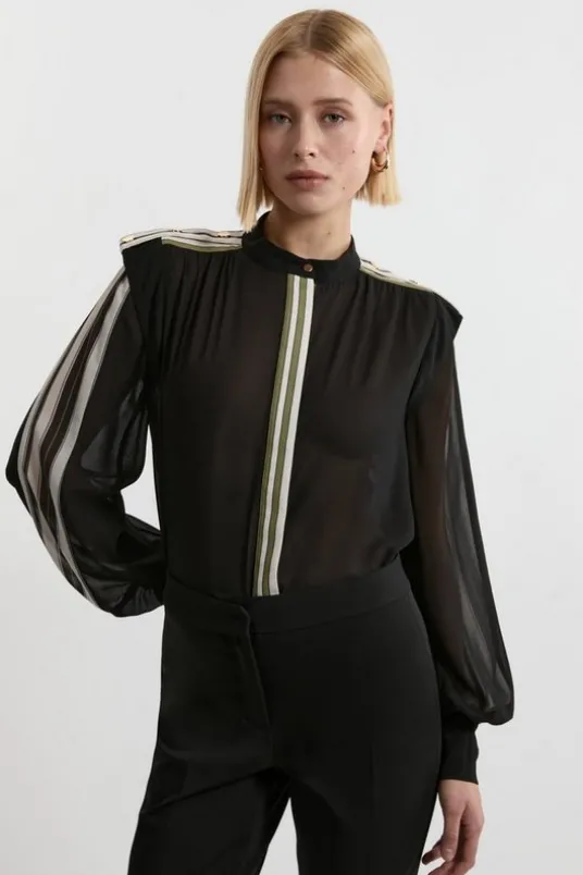 Military Mono Striped Balloon Sleeve Shirt