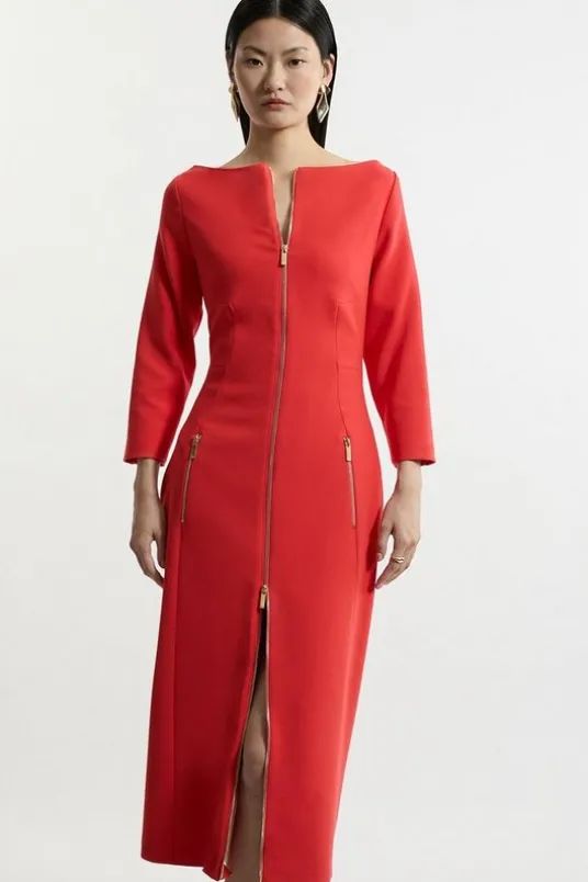 Petite Compact Stretch Tailored Long Sleeve Zip Through Maxi Dress