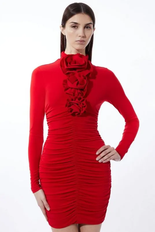 A sculpting mini dress is elevated for after dark luxury with rosette detailing that cascades from a high neck. Finished with an alluring mini length and long sleeves, pair this piece with bold heels and accessories for after-dark formal wear.Rosette detailLong sleevesMini lengthExpertly designed for those 5’3″ and under, our Petite pieces are perfectly proportioned for a smaller frame using shorter lengths.Details & CareMain: 95% Polyester 5% Elastane/Polyester. Lining: 95% Polyester 5% Elastane/Polyester. Gentle machine wash at 30 with similar colours. Model wears a S. Centre back length of a S: 86cm