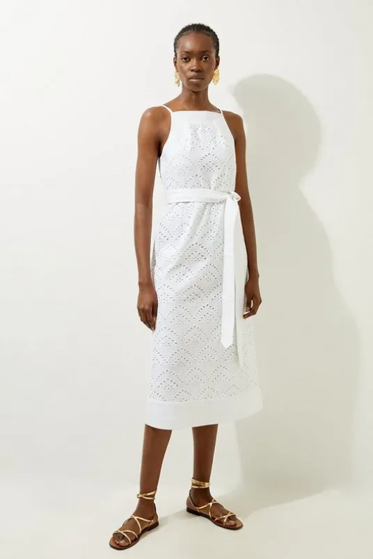 Experience elevated summer looks in our petite midi dress, made with textured broderie fabric, with a universally flattering silhouette, and a belted waist for a cinched silhouette. Style this dress with anything, from heeled boots or block heels for an office look, then with sandals for a summer daytime outfit.Petite Cotton Broderie Woven Belted Midaxi DressHigh Quality Broderie FabricCasual, Flowing SkirtFlattering Fit and Flare SilhouetteBelted WaistbandMidi LengthSquare NecklineExpertly designed for those 5’3″ and under, our Petite pieces are perfectly proportioned for a smaller frame using shorter lengths.Details & CareShell 100% Cotton, Lining 100% Cotton. Wash with similar colours. Wash inside out.Model Height 5”10 – Model wears a UK 8/US Size 6. Length 114cm