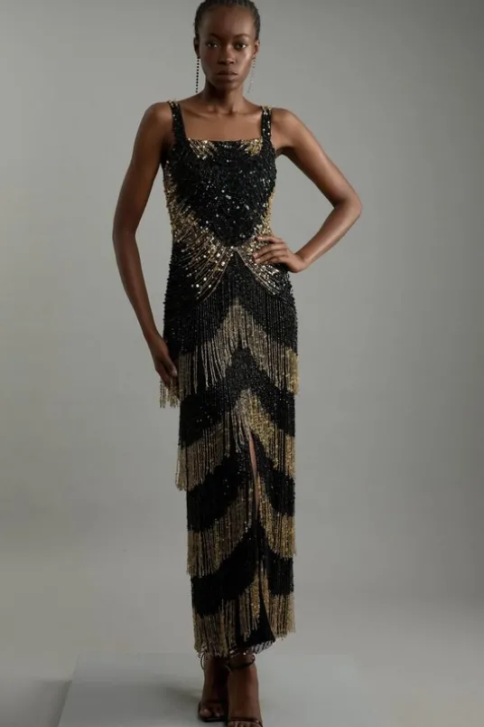 Petite Embellished Mirrored Fringe Strappy Maxi Dress
