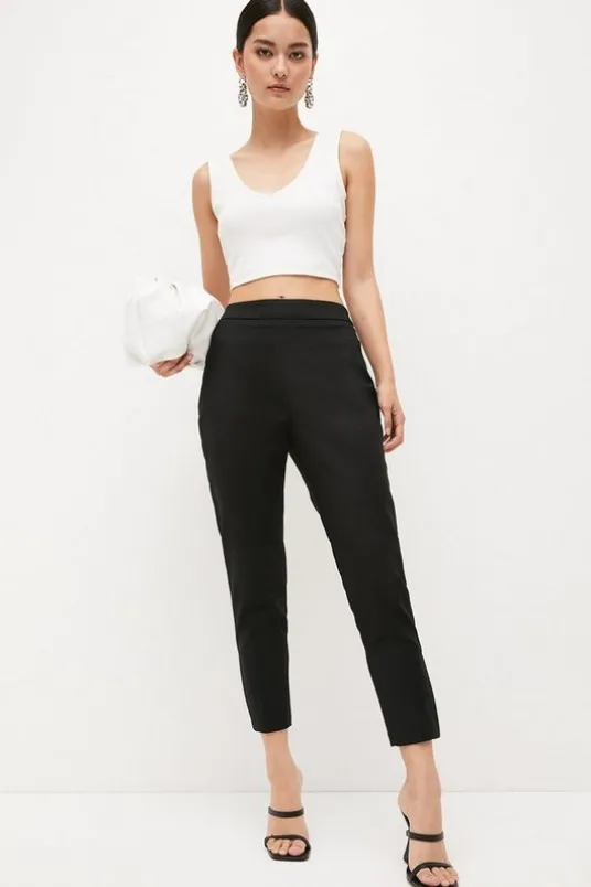 A true closet signature, threaded with this seasons contemporary styling. Characterised by an exposed silver tone side zip that boasts modern appeal, the tailored pants define the waist with a high rise. They form a seamless construction that skims the silhouette with bespoke appeal. Built for season-to-season styling, pair with the rotation of your well-curated closet for casual and formal affairs alike.Expertly designed for those 5’3″ and under, our Petite pieces are perfectly proportioned for a smaller frame using shorter lengths.Details & Care50% Cotton, 47% Polyamide, 3% Elastane. Wash inside out at 30 degrees. Model wears UK size 8 and is 5ft10in. Inside leg length of a UK10 approx 68cm.