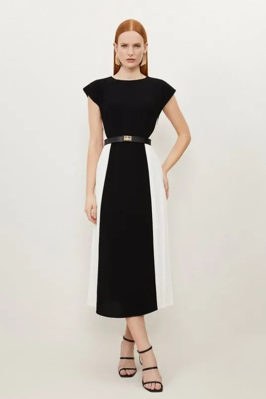 Petite Fluid Tailored Contrast Pleated Panel Skirt Midi Dress