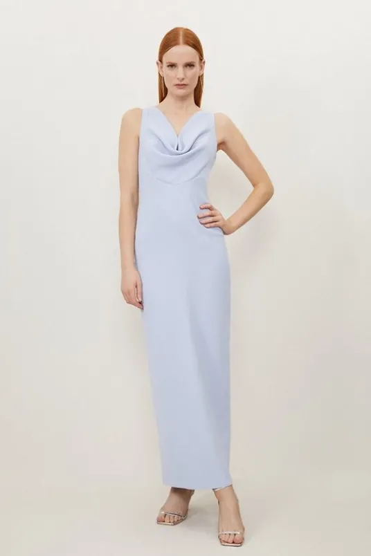 Petite Fluid Tailored Cowl Neck Backless Maxi Dress