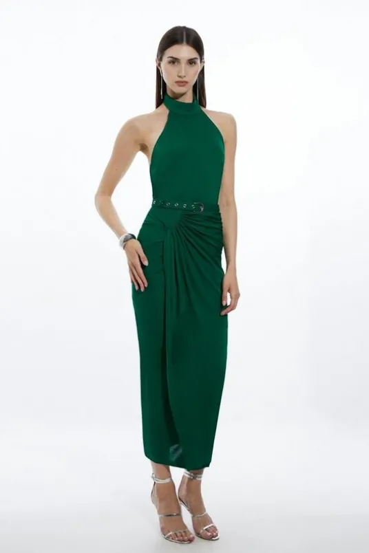 Get occasion ready in our petite maxi dress, with a fitted silhouette, and ruched detail at the hip, as well as a completely backless design that will have you turning heads all evening long. Style it with pointed toe heels to have the drama flow from head to toe.Petite High Neck Twist Jersey Maxi DressHigh Quality, Soft Jersey FabricUnique, Twisted Ruching DetailsFigure Hugging BodiceStraight Fit SkirtStatement Backless DesignBelted WaistbandTie Back FasteningExpertly designed for those 5’3″ and under, our Petite pieces are perfectly proportioned for a smaller frame using shorter lengths.Details & Care96% polyester, 4% elastane. 30 degree synthetic cycle, do not tumble dry, do not dry clean.