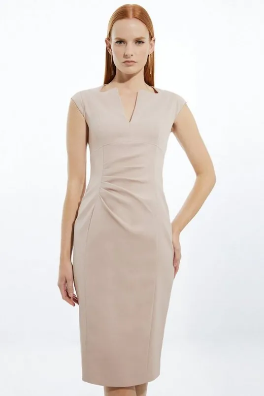 Petite Italian Structured Rib Tailored Envelope Neck Pencil Midi Dress