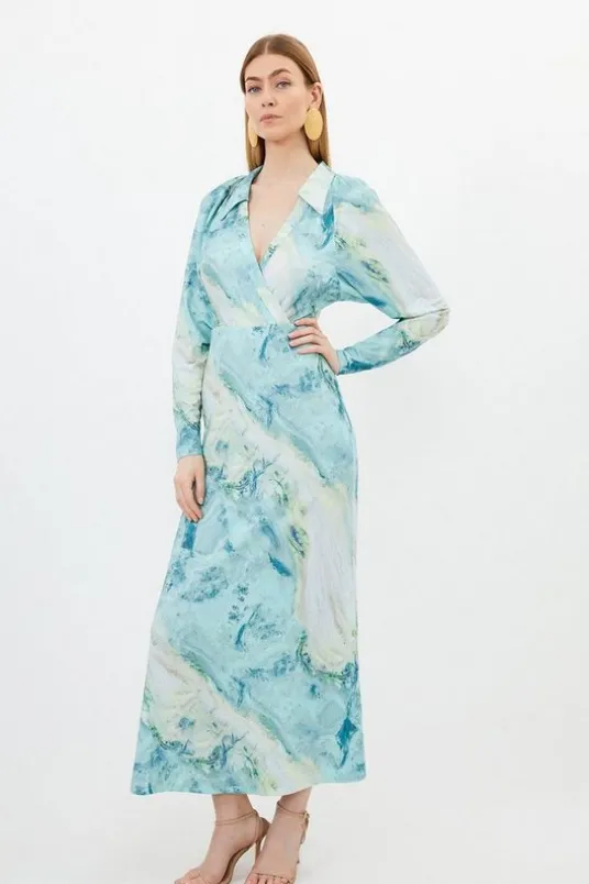Petite Marble Print Jersey Shirt Midi Dress