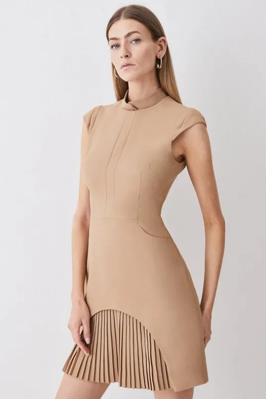 Make this tailored mini dress your new after-dark uniform. Precisely cut to ensure the best fit, it features a high buttoned neck, cap sleeves and pleating detail at the hem.Tailored fabricMini hemlineCap sleevesPleated detailsExpertly designed for those 5’3″ and under, our Petite pieces are perfectly proportioned for a smaller frame using shorter lengths.Details & CareMain: 72% Polyester 28% Polyester. Lining: 100% Polyester. Dry Clean Only. Model wears UK size 8/ US size 4. Item length 85cm